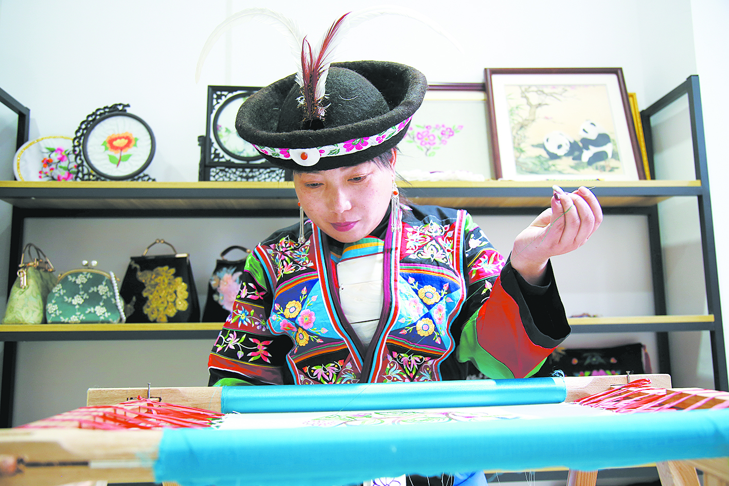 通過市場(chǎng)調(diào)查,最終她得出的結(jié)論是:白馬藏繡不僅有市場(chǎng),而且這個(gè)市場(chǎng)需求量還會(huì)很大。班潤(rùn)美知道,白馬藏繡是時(shí)候走出大山了?;氐讲莸剜l(xiāng),她四處奔走,將自己的調(diào)查結(jié)果原原本本告訴給了家鄉(xiāng)婦女,讓她們有信心跟著自己創(chuàng)業(yè)。她說:“在家創(chuàng)業(yè)最大的好處就是,既可以方便照顧老人孩子,又可以增加家庭收入。時(shí)間不固定,想什么時(shí)候繡就什么時(shí)候繡,想繡多少就繡多少。”很快,她的第一批白馬藏繡就進(jìn)入了市場(chǎng),在得到市場(chǎng)肯定的同時(shí),也讓當(dāng)?shù)貗D女看到了文化轉(zhuǎn)化出來的經(jīng)濟(jì)價(jià)值。