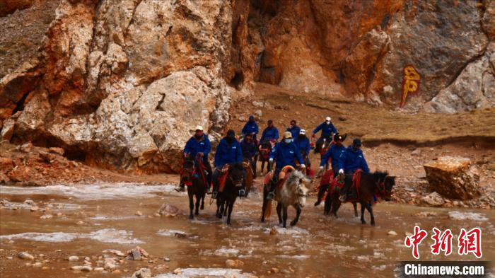 4月21日,在青海省玉樹藏族自治州曲麻萊縣麻多鄉(xiāng)約古宗列曲附近,生態(tài)管護員在巡護。新華社記者 張龍 攝