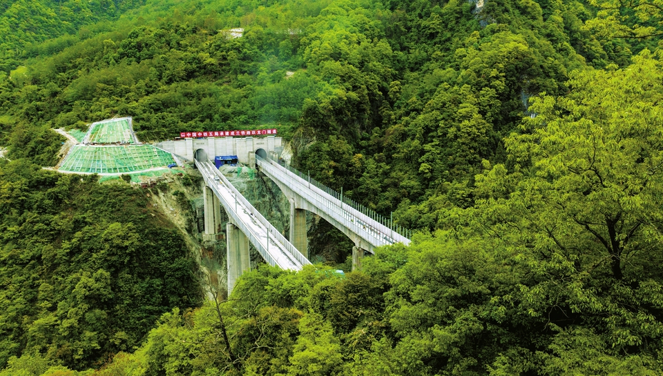 成蘭鐵路躍龍門隧道洞口航拍圖。成蘭鐵路公司供圖