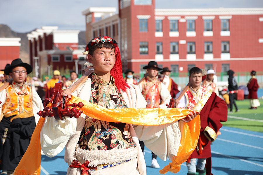 5月6日,青海師范大學(xué)附屬玉樹實(shí)驗(yàn)學(xué)校舉行“五四運(yùn)動(dòng)103周年紀(jì)念大會(huì)暨‘華美青春耀百年’”文化展示活動(dòng),千余名師生身著華麗的民族服飾共同慶祝這一青年人的節(jié)日。