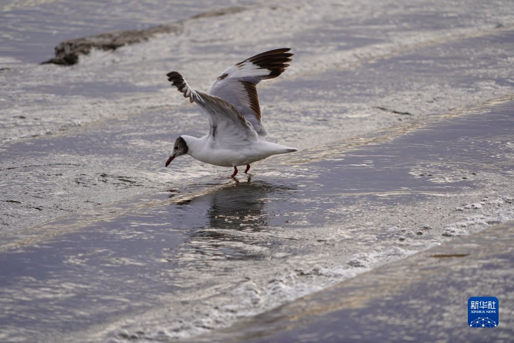 這是6月17日在沙柳河國(guó)家濕地公園拍攝的正在捕食青海湖裸鯉的水鳥(niǎo)。新華社記者 耿輝凰 攝
