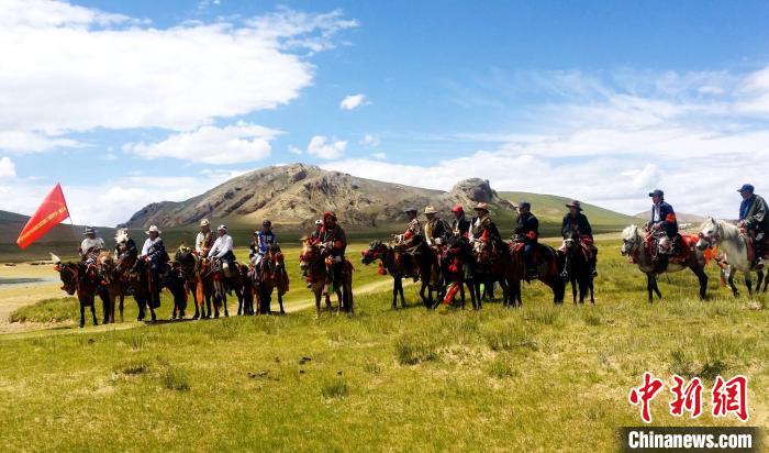 圖為當(dāng)?shù)孛癖婒T馬巡護(hù)。(資料圖) 玉樹州宣傳部供圖