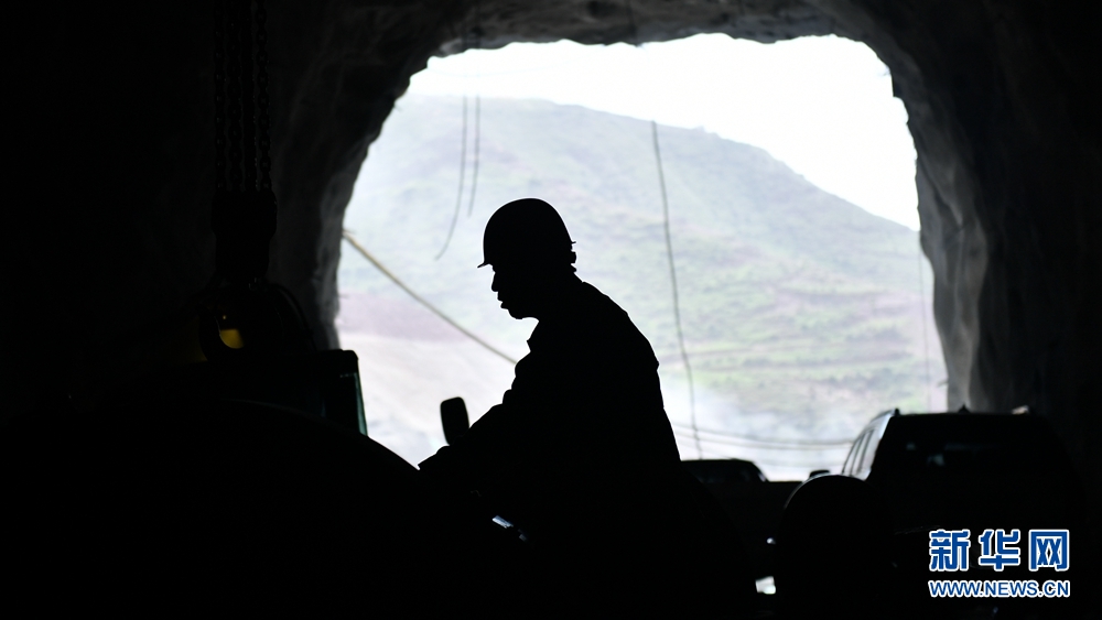 工人在引水隧洞施工現(xiàn)場(chǎng)作業(yè)。