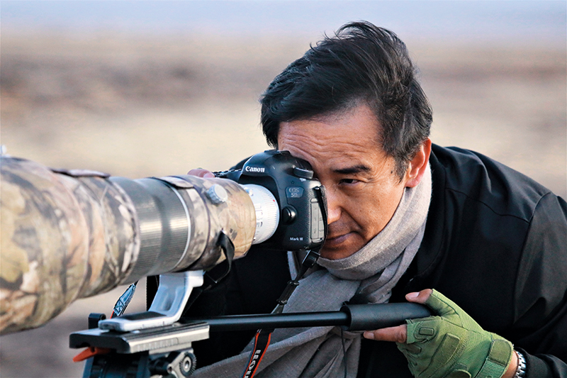 夕陽西下,大風肆虐。49歲的才項南加系上圍巾趕忙下車,從后備箱包裹嚴實的毛毯里拿出相機和三腳架,稍做調(diào)試后,便扛著裝備三步并作兩步地趕往200米外的一片濕地?!摆s緊去看看,兩只黑頸鶴在喝水呢!”他說。