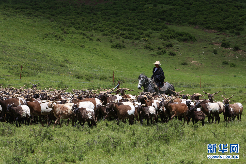 牧民在青海洮河源國(guó)家濕地公園內(nèi)放牧。新華網(wǎng) 卡婭梅朵 攝