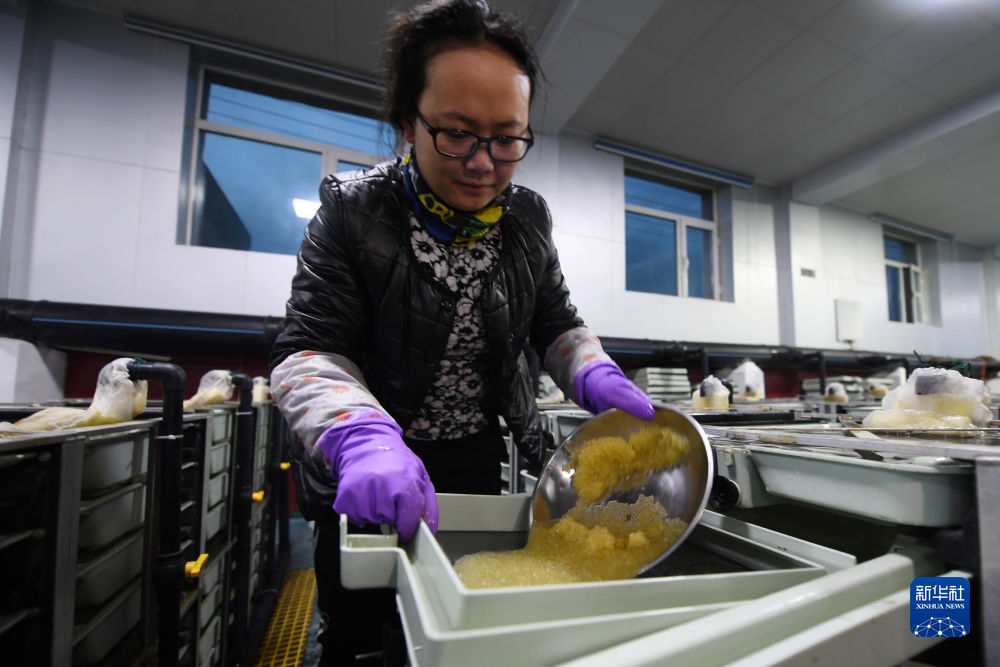 6月29日,在青海湖裸鯉沙柳河泉吉河增殖實(shí)驗(yàn)站的繁育車間,工作人員將采集的魚卵放入孵化盒中。新華社記者 范培珅 攝