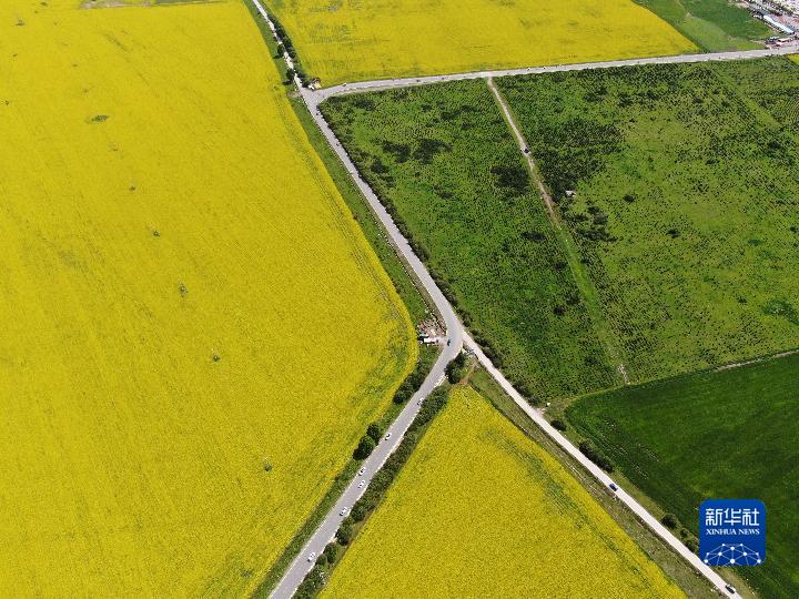盛夏時節(jié),從青海省會西寧出發(fā),沿張汶高速公路驅(qū)車1個多小時,就進入門源回族自治縣境內(nèi)。油菜花鋪展出“金色花海”,天地間融為一幅濃墨重彩的天然畫卷。