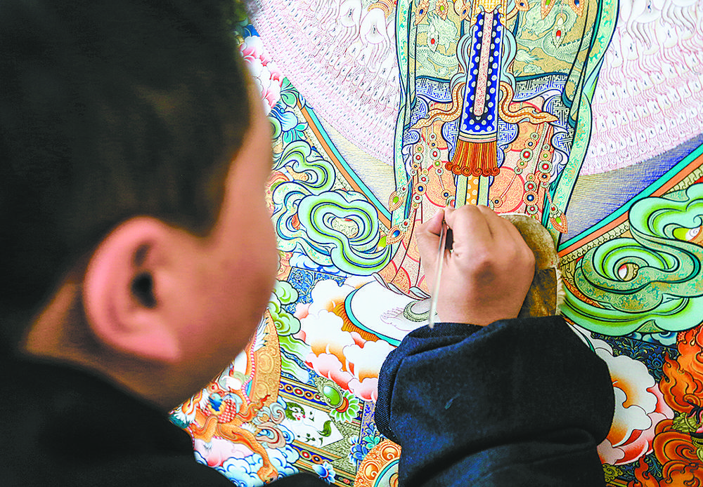 “‘00后’傳承人的加入讓我們看到唐卡這一古老的藝術品煥發(fā)出新生機,孩子們對學習唐卡的熱情也讓我看到了希望?!蹦锉靖锌溃瑹嶝曀囆g作為民族文化珍品,從雪域高原逐漸走向了世界。