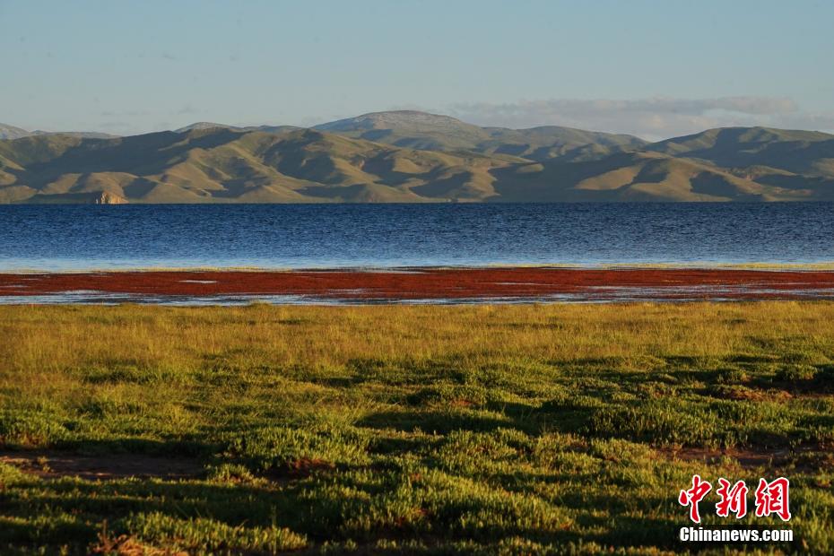 冬格措納湖位于青海省果洛藏族自治州瑪多縣,是一片地處海拔4100多米的淡水湖。夏日的冬格措納湖,湖水湛藍(lán),宛如跌落群山之中的“藍(lán)寶石”。紅、黃、綠色的草灘與湖水相互映襯,美景如畫(huà)。圖為冬格措納湖美景如畫(huà)。 馬銘言 攝