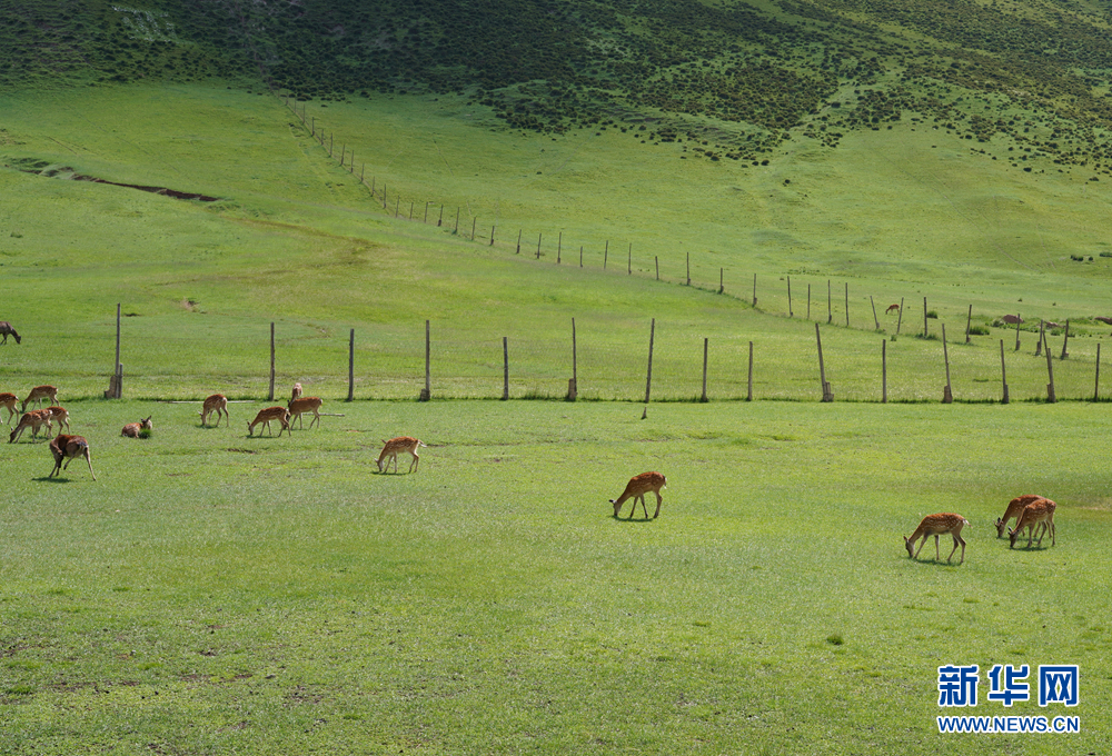 盛夏時節(jié),青海省海北藏族自治州祁連縣的祁連鹿場,綠草如茵,鹿鳴沃野。