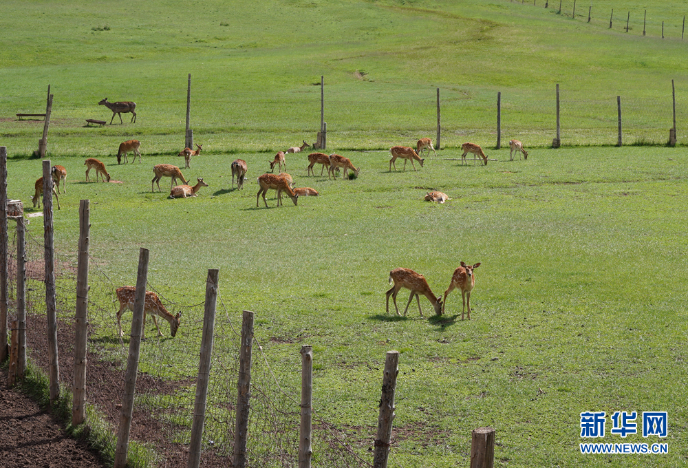 一群梅花鹿正在鹿場內(nèi)愜意地吃草、休憩。新華網(wǎng) 卡婭梅朵 攝