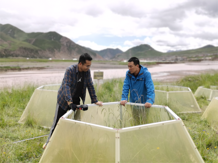 “模擬增溫試驗(yàn)”是國際上觀測不同增溫狀態(tài)下植物生態(tài)系統(tǒng)變化的主要研究方式。這項(xiàng)實(shí)驗(yàn)通過在草地上安裝不同高度的溫箱,布設(shè)傳感器觀測箱內(nèi)溫度,模擬形成不同增溫條件,從而分析以高原嵩草為優(yōu)勢種的高寒草甸植被對氣候變暖的響應(yīng)。