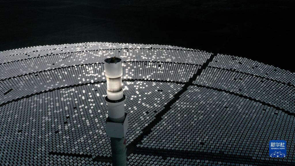 這是位于青海省海南藏族自治州共和縣光伏產(chǎn)業(yè)園內(nèi)一處塔式光熱發(fā)電項目(2021年3月3日攝,無人機(jī)照片)。新華社記者 張宏祥 攝
