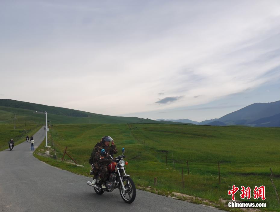 圖為生態(tài)管護(hù)員騎摩托車行進(jìn)。張?zhí)砀?攝
