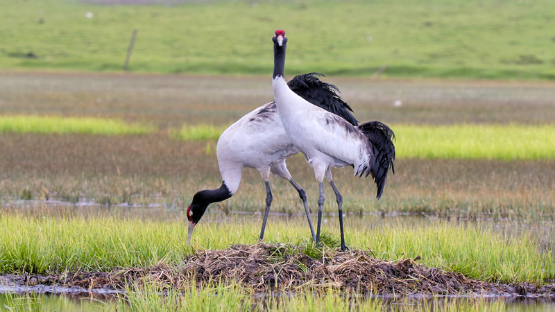 黑頸鶴頻繁“駐足”中國(guó)“鹽湖城”