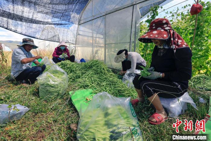 八月中旬,在四川省阿壩藏族羌族自治州壤塘縣的熱布卡蔬菜基地,五月種植的第一批四季豆(學(xué)名菜豆,下同)正值豐收。50歲的陳老會(huì)年初從云南來到四川壤塘工作,她和工友們將剛采摘的四季豆篩選裝袋,近五十斤重的包裝袋整齊鋪滿地面。“我們下午采摘的蔬菜,第二天早上就能出現(xiàn)在成都的市場上?!彼^也不抬地忙著手中的活。