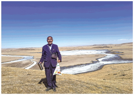 圖為巡護(hù)途中的多杰老人。澤庫縣委宣傳部 供圖