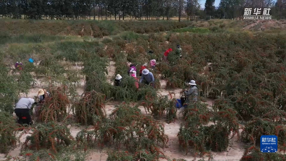 金秋時節(jié),在位于柴達木盆地東南部的青海省海西蒙古族藏族自治州都蘭縣,20余萬畝枸杞迎來豐收季,紅玉般晶瑩剔透的果實壓彎了根根枝條,采收工人抓緊采收,爭取更好地保持枸杞的新鮮度。
