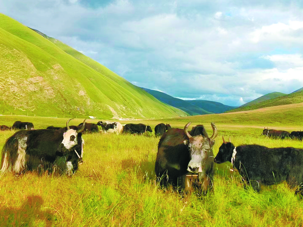 散落在草原山谷間的牦牛。本報(bào)記者 程宦寧 張子涵 攝