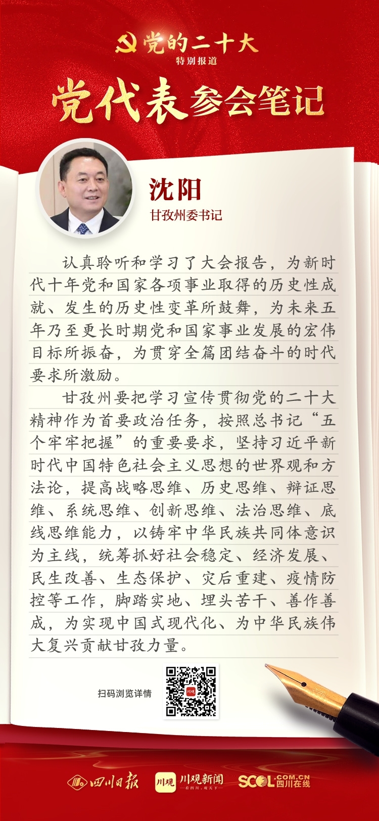 出席盛會,來自四川的黨代表深感使命光榮、責任重大,大家認真履職,結(jié)合報告談?wù)J識、談體會、談打算。川觀新聞特此推出“黨代表參會筆記”欄目,分享黨代表們的參會心得,敬請垂注。