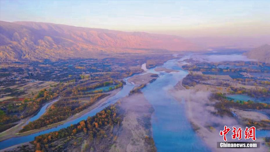 深秋時節(jié),享有“天下黃河貴德清”美譽的青海省貴德縣秋意正濃。黃河岸畔,一層層薄霧如飄紗籠罩河面,碧波蕩漾的黃河水與兩岸樹林、農(nóng)田、丹霞地貌交相輝映,美景如畫。青海省是中華民族母親河黃河的發(fā)源省,黃河流經(jīng)貴德76.8公里。貴德縣融媒體中心 供圖