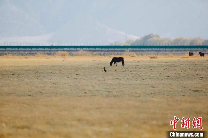 連日來,格爾木市攝影愛好者在格爾木拖拉海草原一濕地內拍攝時,發(fā)現(xiàn)一只極其罕見的國家一級保護瀕危鳥類黑鸛,還有黑頸鶴、蓑羽鶴等各類珍稀鳥兒也在這里棲息。