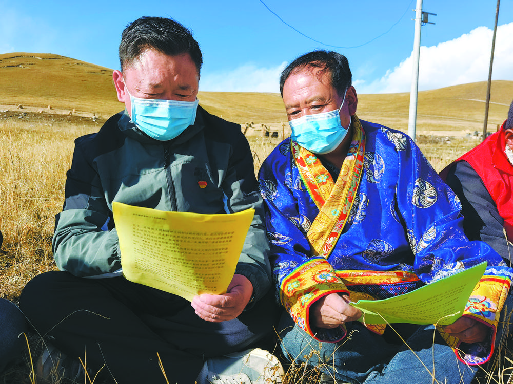 “說(shuō)得好,這十多年來(lái),各村廣場(chǎng)修了、村道硬化了、有安全住房,家家戶戶有轎車,吃穿不愁,日子過(guò)得確實(shí)好。黨的二十大報(bào)告中也說(shuō)了,‘人民群眾獲得感、幸福感、安全感更加充實(shí)、更有保障、更可持續(xù),共同富裕取得新成效’,但是大家要明白,我們?nèi)缃衲苡泻萌兆尤奎h?!?才仁洛加接過(guò)話茬講道。