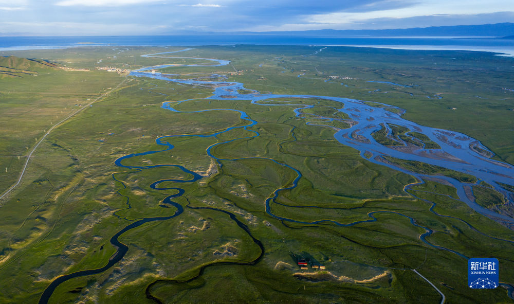 這是青海湖布哈河濕地一景(2020年7月10日攝,無人機照片)。新華社記者 張宏祥 攝