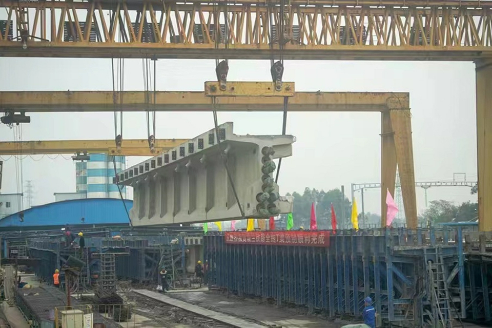 11月17日,記者從成蘭鐵路有限公司獲悉,成蘭鐵路什邡制梁場(chǎng)最后一片T梁順利澆筑完成,標(biāo)志著成都至川主寺(黃勝關(guān))段全線T梁生產(chǎn)任務(wù)全部完成,為全線貫通打下堅(jiān)實(shí)基礎(chǔ)。