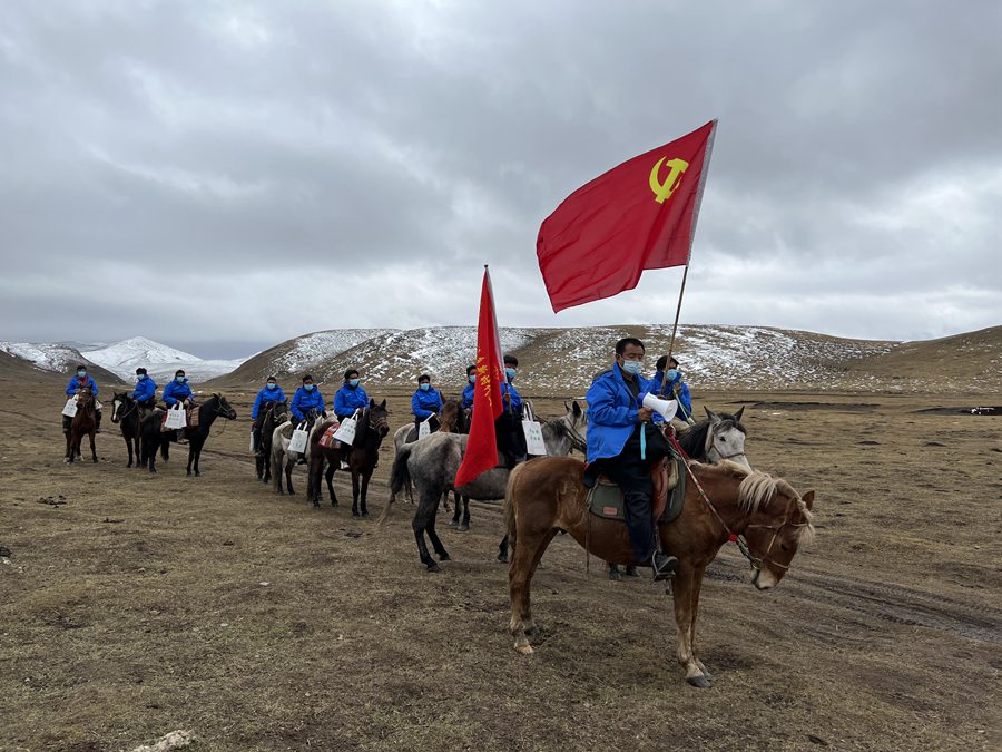 寒風(fēng)呼嘯,馬背上,黨旗獵獵作響。經(jīng)過一個多小時的跋涉,宣講隊來到目的地。
