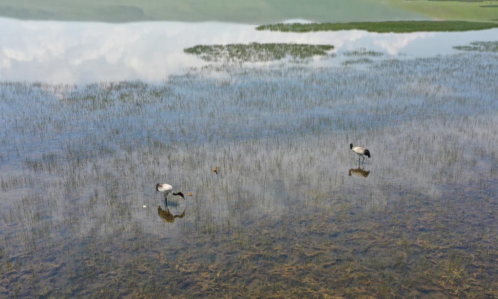 人鶴共生:濕地大省青海多措并舉引來(lái)黑頸鶴翔集