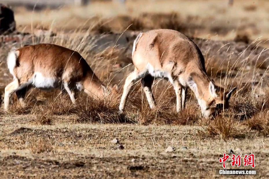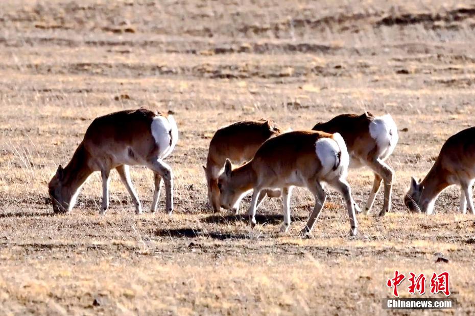 圖為成群普氏原羚正在覓食。剛察縣融媒體中心供圖