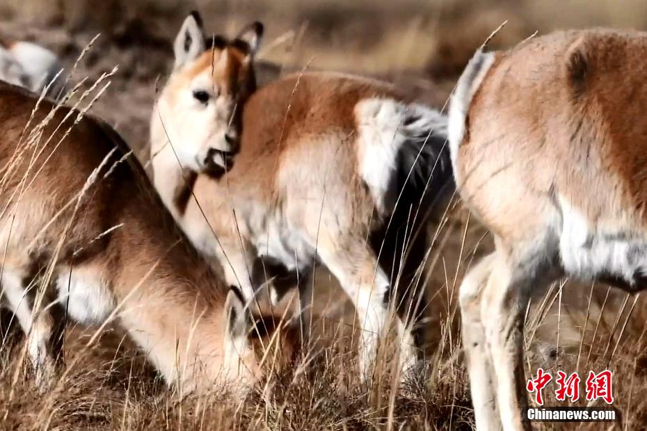 圖為青海湖畔“撒歡”的普氏原羚。剛察縣融媒體中心供圖