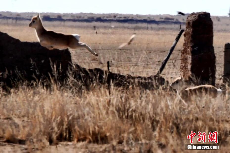 圖為普氏原羚跳過(guò)網(wǎng)圍欄。剛察縣融媒體中心供圖