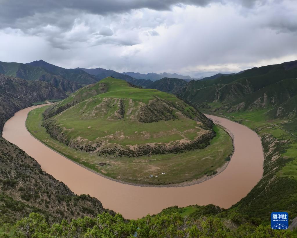 在青海省玉樹(shù)藏族自治州治多縣拍攝的“萬(wàn)里長(zhǎng)江第一灣”(2021年7月23日攝)。新華社記者 呂雪莉 攝