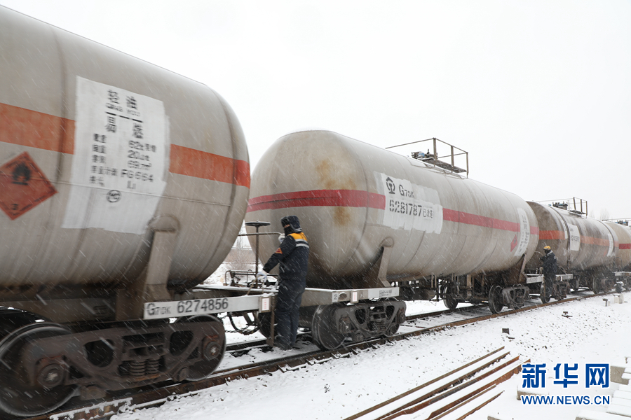 列檢人員對貨運列車進行檢查。新華網(wǎng) 馬建林 攝