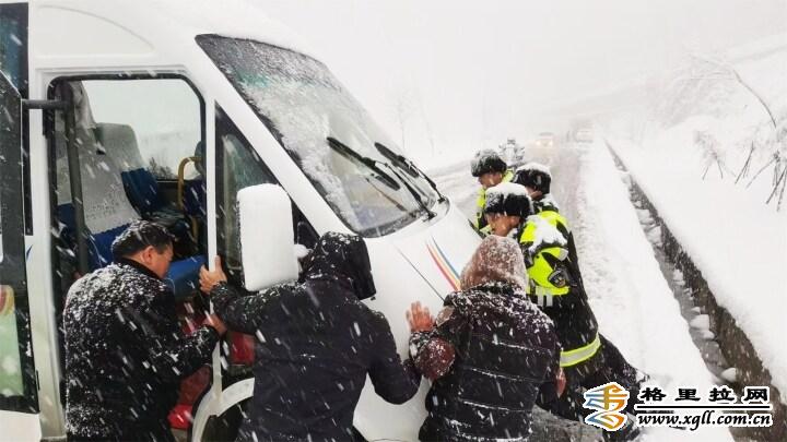 2月22日,大雪使白馬雪山路面積雪結(jié)冰,導(dǎo)致上百輛汽車擁堵滯留,交警冒著嚴(yán)寒疏導(dǎo)交通。