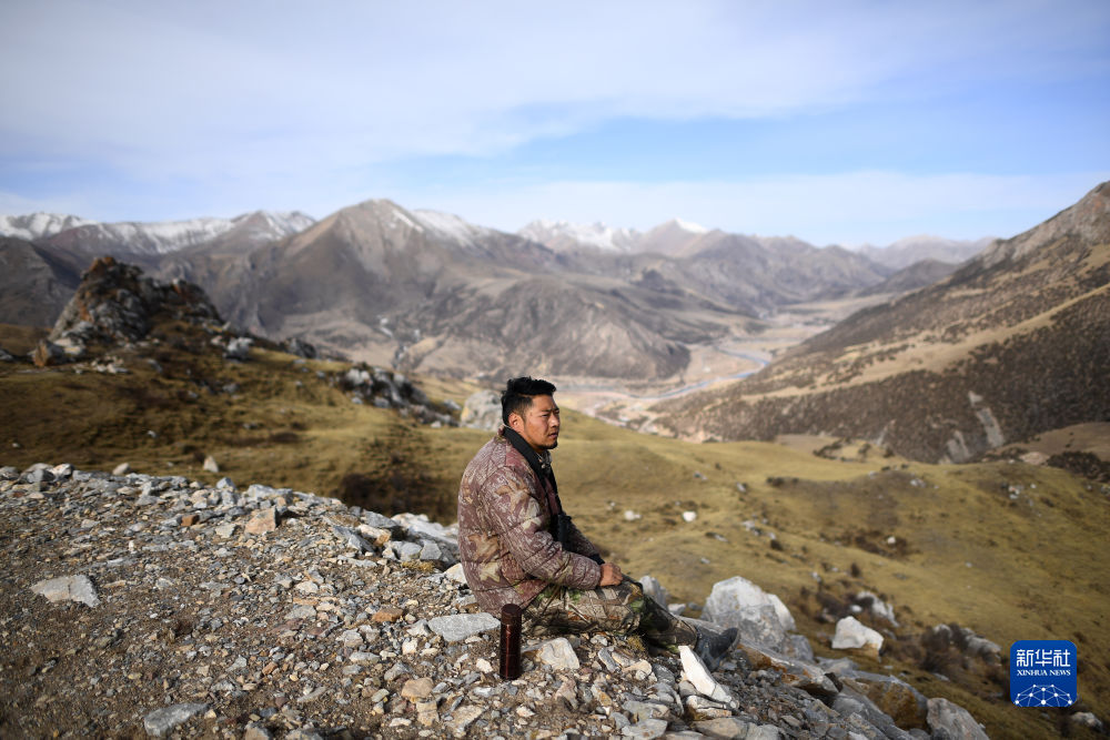 2月22日,更求曲朋在巡護途中休息。新華社記者 張宏祥 攝