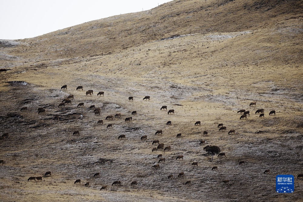 這是2月22日在昂賽大峽谷拍攝的白唇鹿。新華社記者 費茂華 攝