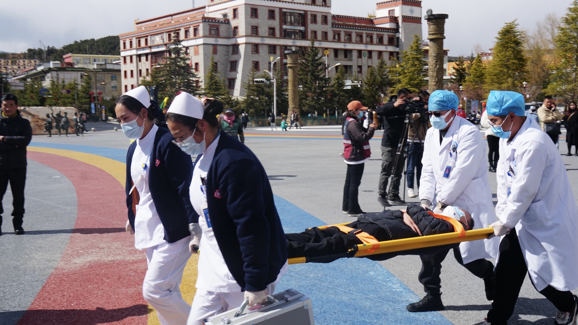 香格里拉市地震應(yīng)急演練現(xiàn)場(chǎng)
