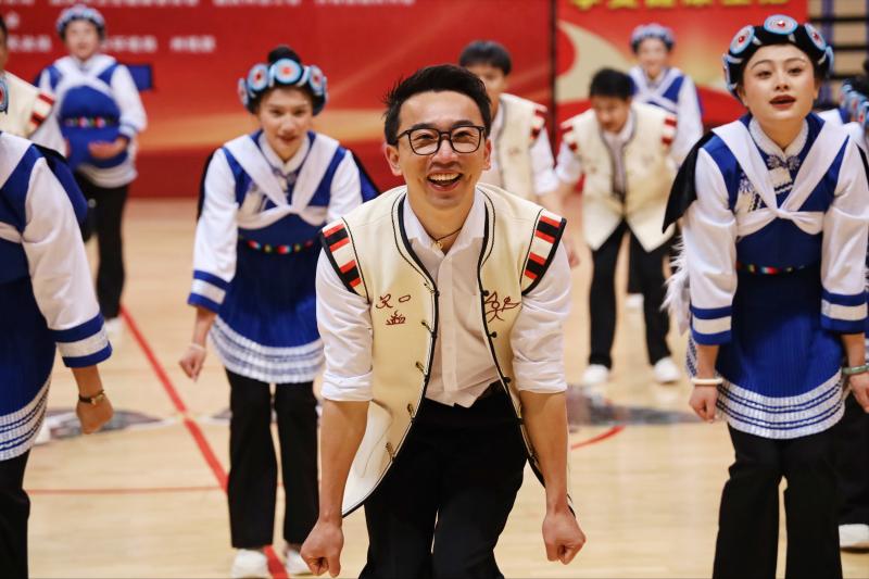 來(lái)自州級(jí)各委辦局、各企事業(yè)單位、各人民團(tuán)體的16支代表隊(duì)參賽表演。 伴隨著輕松明快的音樂,《舞動(dòng)高原》《鐵肩道義·踢踏前行》《桃香陶韻》《律動(dòng)青春·點(diǎn)贊新時(shí)代》《斗嘎嘞》《花木“藍(lán)”焰》等節(jié)目逐一亮相,明艷的民族服飾,熱情的動(dòng)作展演,贏得現(xiàn)場(chǎng)掌聲不斷。