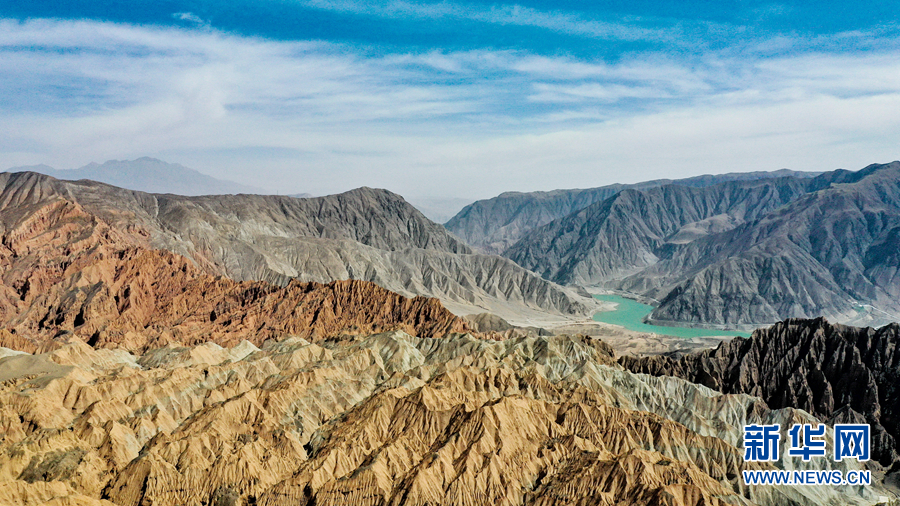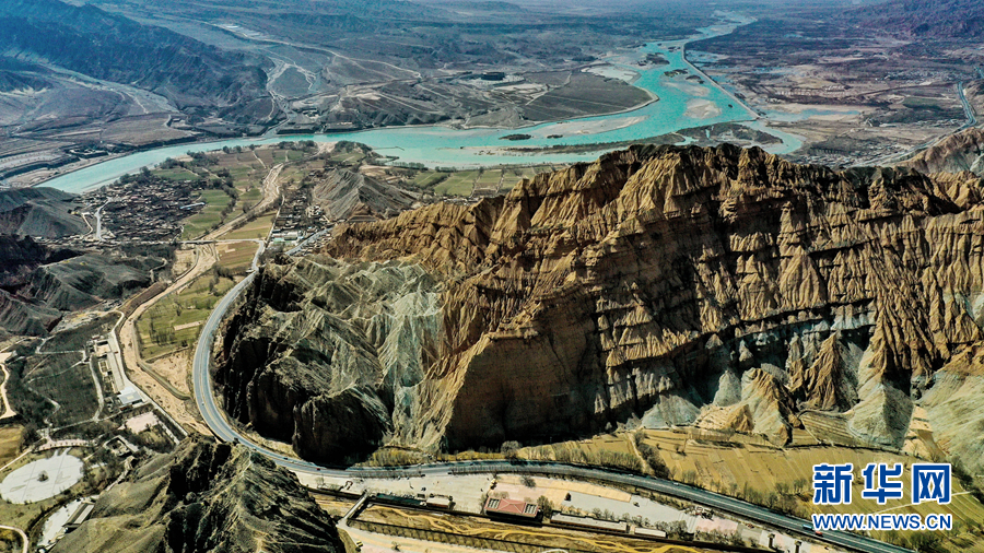 隨著氣溫回暖,位于黃河岸畔的青海省海南藏族自治州貴德縣春意漸濃。從高空俯瞰,貴德國(guó)家地質(zhì)公園內(nèi),碧水東流、丹霞相映,勝似一幅奇特瑰麗的高原畫卷。