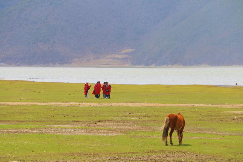 春分節(jié)氣前后,香格里拉氣溫回暖,納帕海的草原也逐漸染綠,游客們?cè)谛蕾p草原春景的同時(shí)也不忘合影留念。[詳細(xì)] -