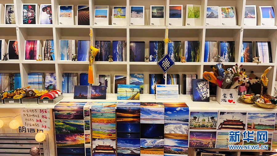 文創(chuàng)小店的店員汪小小向記者介紹:“這些圖案都是我們自己拍攝的,目的就是讓它們‘飛’到全國(guó)各地、全世界,讓更多人看到青海美景。我們的明信片還可以代寄,與之相匹配的還有特色郵戳,蓋在明信片上很有儀式感?!蓖粜⌒≌f。