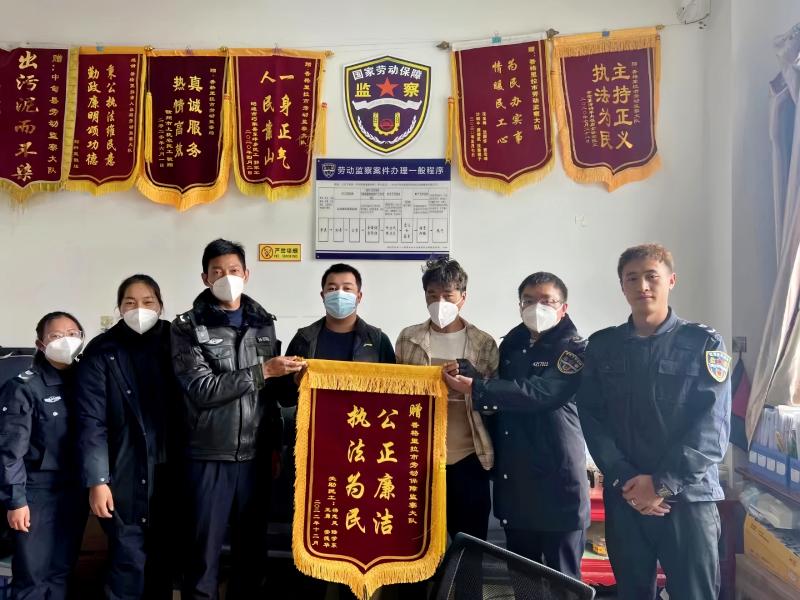 2022年12月,楊應(yīng)中所在的香格里拉市人社局勞動(dòng)監(jiān)察大隊(duì)收到某建筑工程有限公司拖欠農(nóng)民工工資22000元的情況反映,楊應(yīng)中和監(jiān)察人員迅速開展調(diào)查工作,經(jīng)過一系列的調(diào)查處理,被拖欠的工資全部打入農(nóng)民工賬戶,妥善有效地化解了欠薪隱患。事后,6名涉事農(nóng)民工將一面印有“討薪維權(quán)暖人心 排憂解難似親人”的錦旗送到該大隊(duì),對(duì)勞動(dòng)保障監(jiān)察人員追回其被拖欠工資表示感謝,由衷稱贊他們迅速反應(yīng)、高效處置的工作作風(fēng)。一面錦旗、一份責(zé)任,錦旗不僅承載了群眾對(duì)勞動(dòng)保障監(jiān)察工作的肯定,更承載著勞動(dòng)者對(duì)勞動(dòng)監(jiān)察工作的信任和期盼。對(duì)楊應(yīng)中來說,用心用情為民服務(wù)是每天的工作日常,群眾的認(rèn)可更加堅(jiān)定他的初心使命,他說:“在今后的工作中,一定繼續(xù)為勞動(dòng)者解決‘急、難、愁、盼’問題,以實(shí)際行動(dòng)切實(shí)保護(hù)好勞動(dòng)者的合法權(quán)益?!?/p>