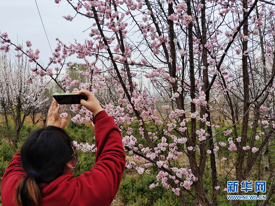 化隆縣安達(dá)其哈花海盛開的杏花。新華網(wǎng) 魚昊 攝