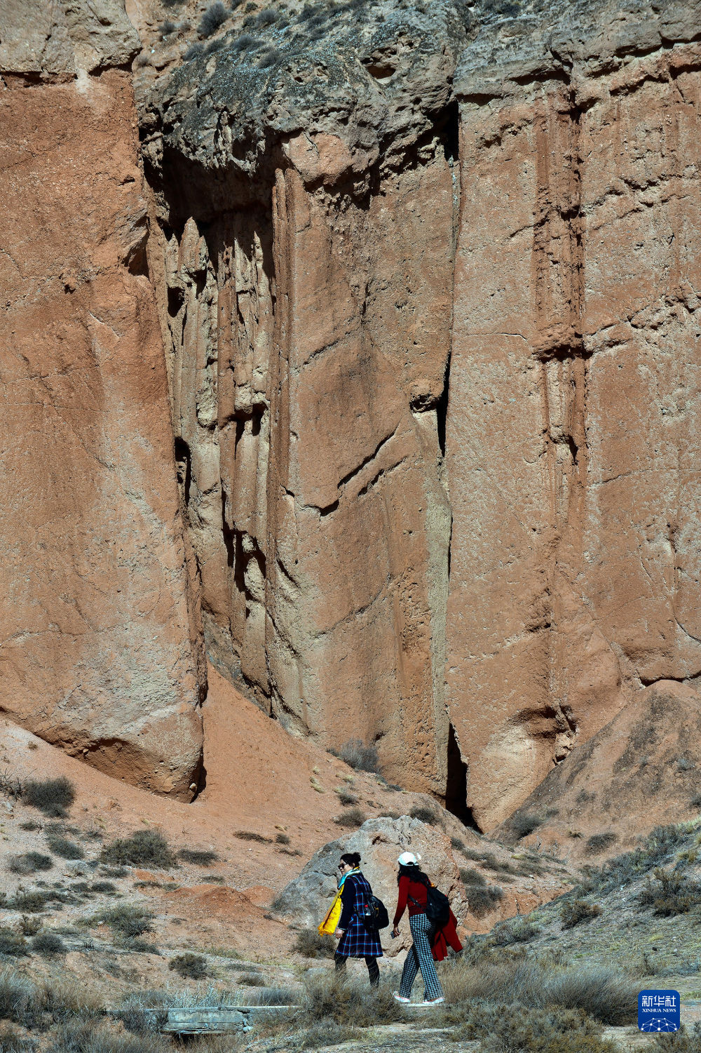 4月8日,游客行走在青海貴德國家地質(zhì)公園丹霞地貌間。新華社記者 黃豁 攝