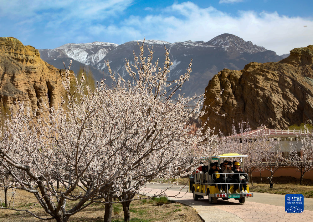 春暖花開的季節(jié),位于青海省海南藏族自治州貴德縣的貴德國家地質(zhì)公園迎來春游的游客,盛開的春花與丹霞地貌、雪山構(gòu)成一幅美麗的高原春色圖。