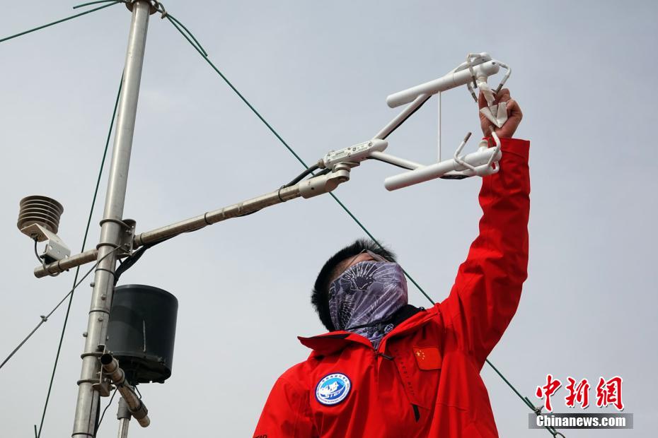 圖為第二次青藏科考隊員、中科院空天院博士生周丁旺在觀測站開展科研設(shè)備維護(hù)工作。孫自法 攝