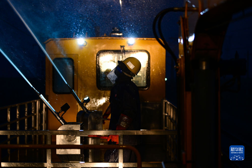 青藏鐵路從青海省海西蒙古族藏族自治州的察爾汗鹽湖橫穿而過(guò),這一段約33公里的線路被稱為“萬(wàn)丈鹽橋”。春季大風(fēng)不僅揚(yáng)沙,還會(huì)揚(yáng)起察爾汗鹽湖的鹽,鹽污會(huì)在接觸網(wǎng)絕緣子表面附著,降低絕緣子的爬電距離,遇到雨雪天氣放電,造成接觸網(wǎng)大面積跳閘,影響青藏鐵路正常行車。近年來(lái),西寧供電段加大科技投入,清洗方式由原來(lái)的使用抹布、噴水壺、小型清洗機(jī)轉(zhuǎn)變?yōu)楦邏核畼?,有效提升作業(yè)效率。
